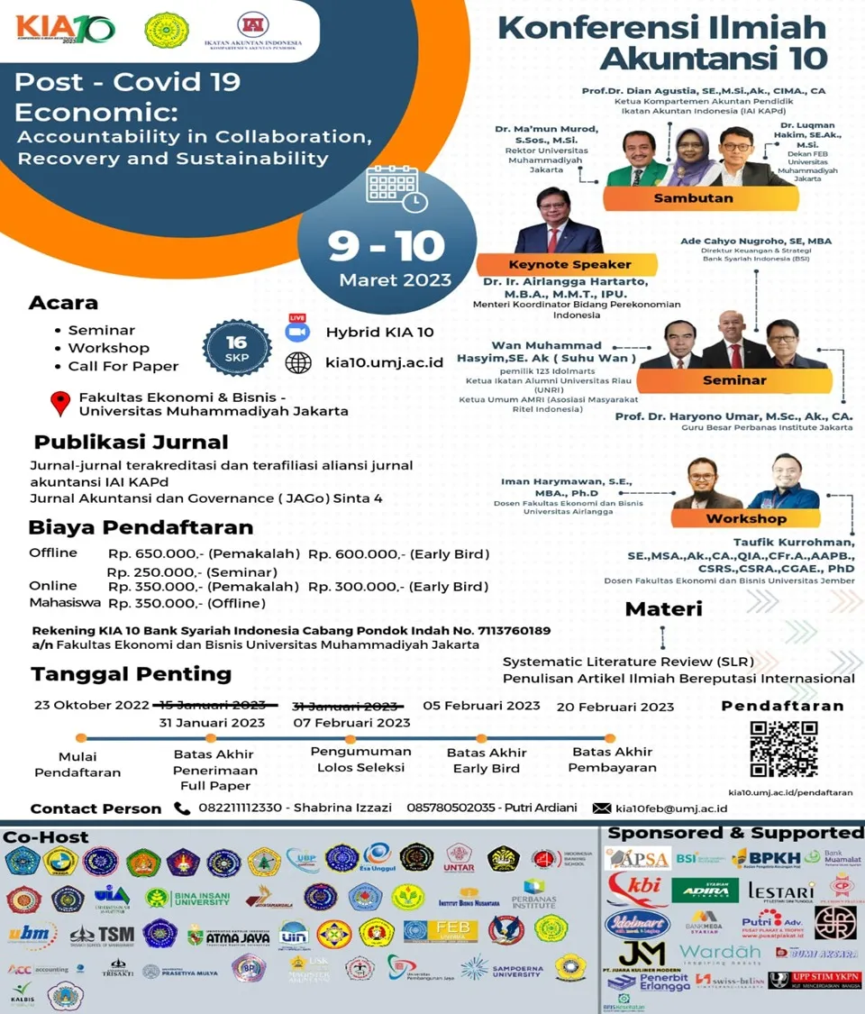 Konferensi Ilmiah Akuntansi 10 di Universitas Muhammadiyah Jakarta Tanggal 9 - 10 maret 2023 support by APSA PTMA